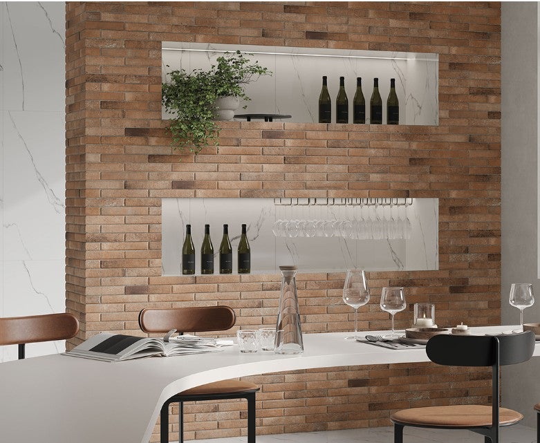 Bristol Rojo 32x89 porcelain tiles combine durability with easy upkeep, making them ideal for both indoor and outdoor settings. Featuring a lifelike brick texture, they enhance feature walls or cladding with a stylish, enduring appearance.