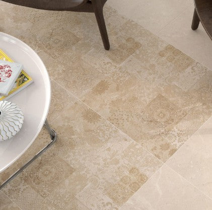 Lord Marfil Collage 60x60 is a rectified porcelain tile featuring a matte finish and an elegant patterned design. Its precise edges ensure seamless installation, making it ideal for both walls and floors. Durable and easy to maintain, this tile brings a sophisticated look with lasting quality to any space.