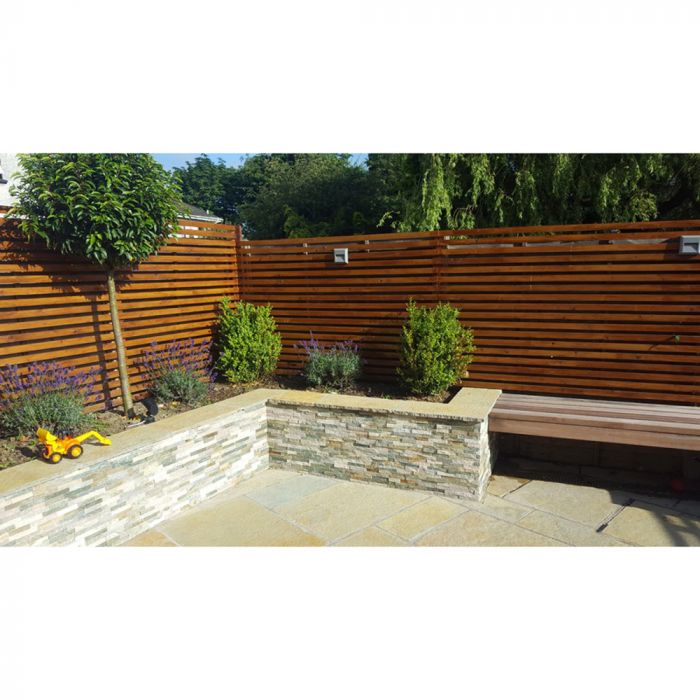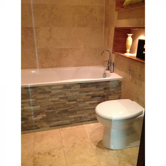 Premium natural stone in oyster. Each panel fits seamlessly with very little waste. Delivery time can vary. We will contact you with a date.