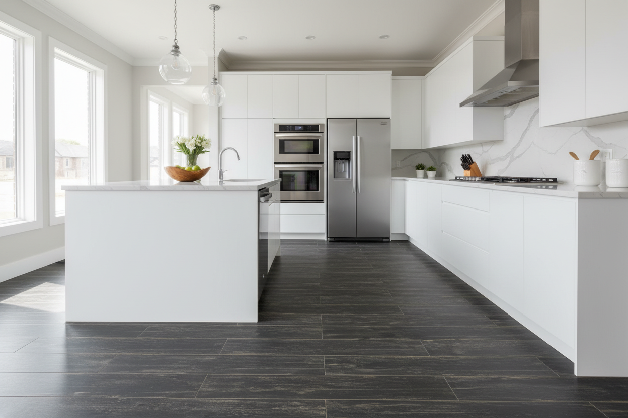 Timeless Nero is a sleek dark porcelain tile with a matt or polished finish that adds dramatic contrast to modern interiors. Porcelain tiles are denser and harder than ceramic, offering superior durability and low porosity for resistance to water, scratches and stains【509383103011971†L103-L126】. Use this tile to create striking feature walls or monochrome floors that anchor lighter décor.